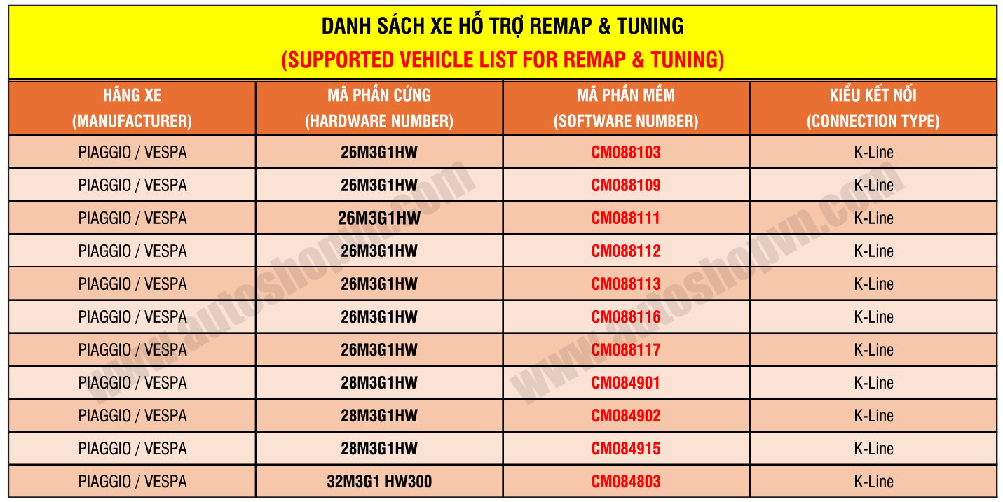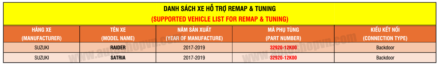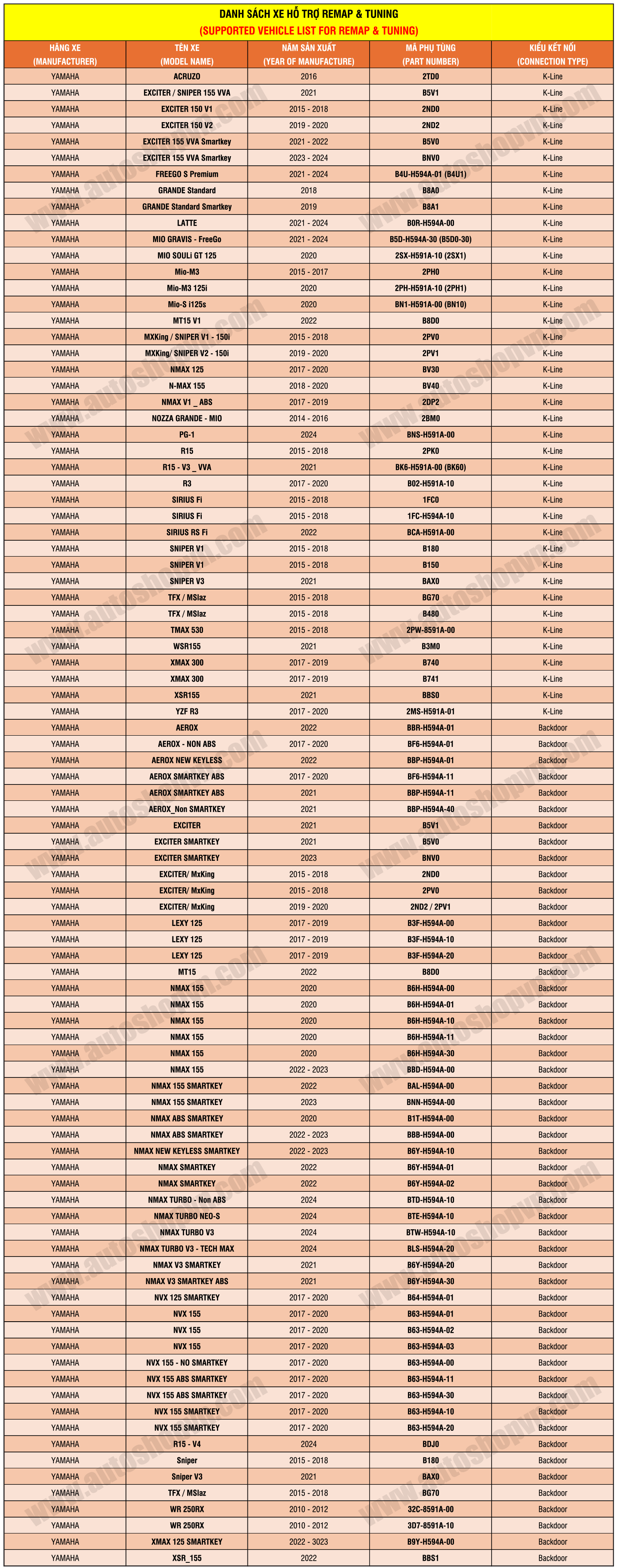 LIST OF MOTORCYCLES SUPPORTED FOR REMAP FUNCTION BY SMARTTOOL 2 & SMARTFI 2 DEVICES