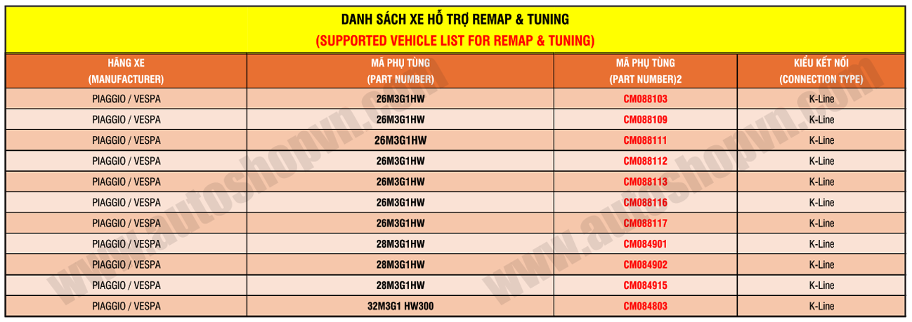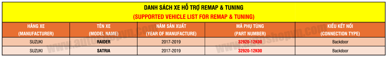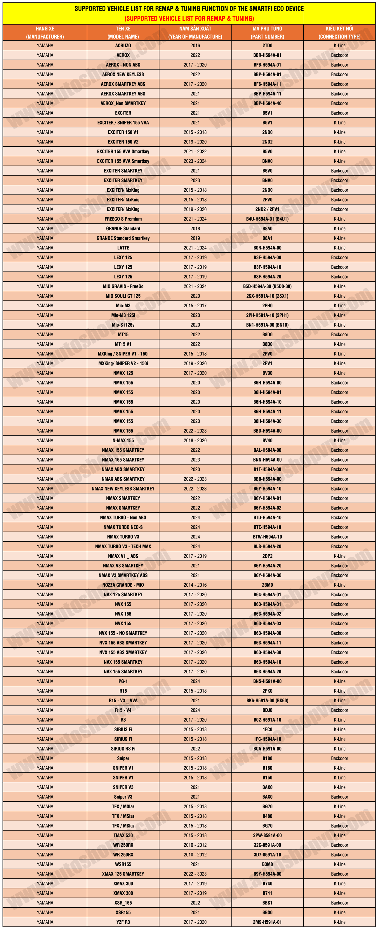LIST OF MOTORCYCLES SUPPORTED FOR REMAP FUNCTION BY SMARTTOOL 2 & SMARTFI 2 DEVICES