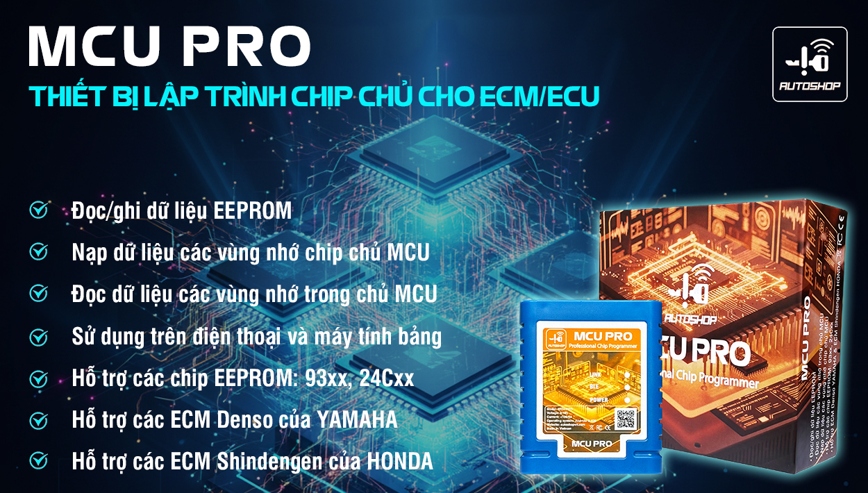 ➣ Thiết bị MCU PRO là giải pháp tiên tiến dành cho các kỹ thuật viên chuyên nghiệp. Thiết bị này cho phép bạn thực hiện thao tác đọc và ghi dữ liệu chip một cách chính xác và nhanh chóng. MCU PRO được trang bị bluetooth hiện đại, dễ dàng kết nối và sử dụng ngay trên điện thoại hoặc máy tính bảng.
